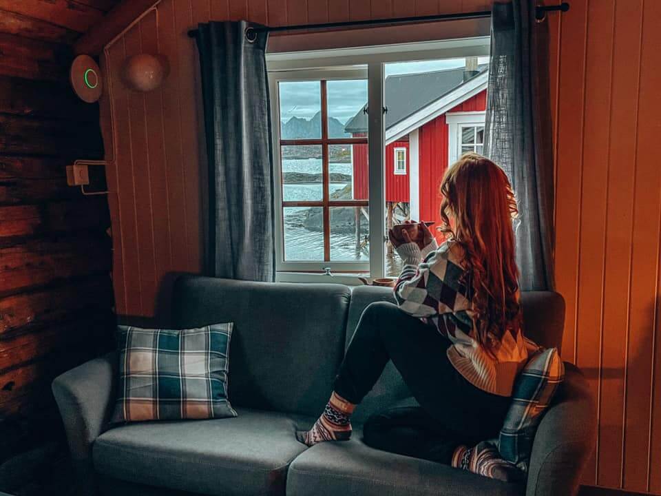 Ora, immaginate la mia emozione nel realizzare finalmente quel sogno tanto atteso! Varcare la soglia della rorbu, sedermi sul comodo divano e, come una bambina, affacciarmi dalla piccola finestra per ammirare le altre palafitte circostanti. L’unica melodia che riempiva l’aria era il canto dei gabbiani, come se celebrassero il nostro arrivo. Ancora oggi, mi pizzico per accertarmi che tutto ciò che sto vivendo non sia solo un sogno, ma una realtà che ho desiderato fin da quando ero una piccola bambina.