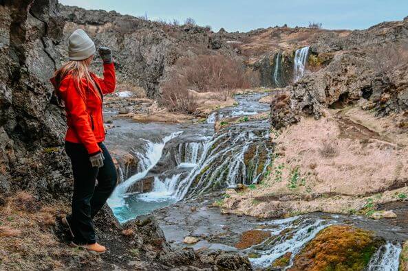 Per raggiungere la Cascata di Haifoss, è necessario seguire un sentiero escursionistico che offre panorami spettacolari lungo il percorso.La Cascata di Haifoss si trova nel distretto di Árnessýsla, a est dell’Altopiano dell’Islanda Centrale. Per raggiungerla, puoi prendere la strada 32 da Reykjavík e seguire le indicazioni per il villaggio di Hella. Da lì, devi prendere la strada 26 in direzione est fino al bivio per la strada F225, che ti porterà alla cascata. Si consiglia di noleggiare un veicolo 4×4 per affrontare le strade sterrate e accedere al parcheggio della cascata. Da lì, dovrai fare una breve passeggiata di circa 2 chilometri per raggiungere il punto panoramico della cascata.