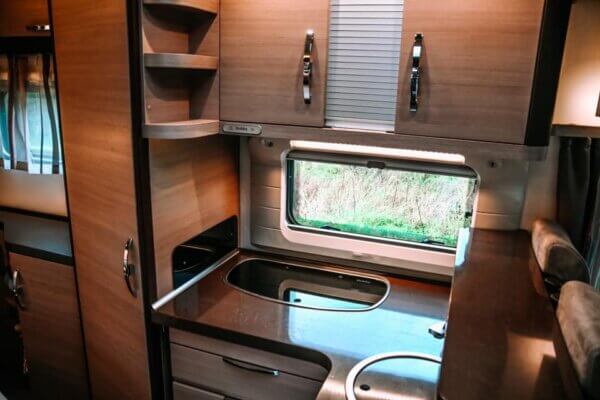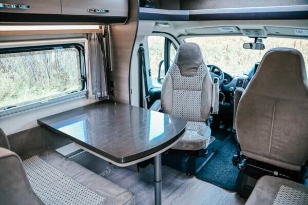 Giusto per fare un breve elenco non esaustivo: riscaldamento a gas (equipaggiamento con due bombole), acqua calda sanitaria, fornelli a gas, lavello, aria condizionata, impianto di diffusione, televisione con impianto satellitare ed account Netflix, scaletta elettrica con luce di cortesia, pannello di controllo elettronico del riscaldamento e dell’acqua calda, controllo consumo elettricità delle batterie, controllo del livello dei serbatoi dell’acqua (potabile ed acque grigie), bagno con wc, lavandino e doccia, barbecue, tavolo e sedie da campeggio, tendine schermanti integrate, frigorifero ultra capiente con freezer, ecc. ecc.
