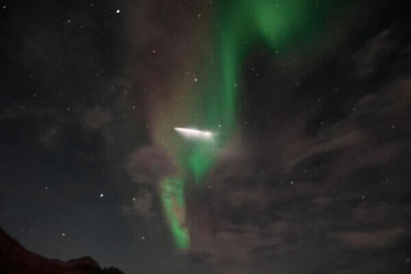 Ebbene si, la “dama verde” ha fatto la sua comparsa sulla volta celeste e, coincidenza più unica che rara, si è fatta fotografare proprio mentre un razzo Atlas V lanciato dalla NASA la attraversava!