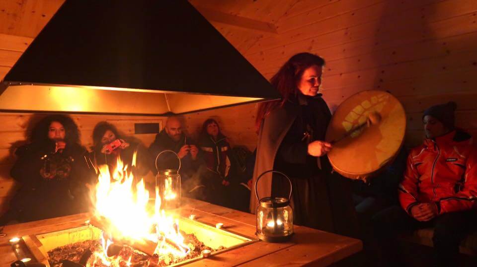 Il suono del tamburo ed il fuoco acceso ci accolgono all’interno di una Kota dove un’affascinante sciamana ci offre una bevanda calda su una kuska…